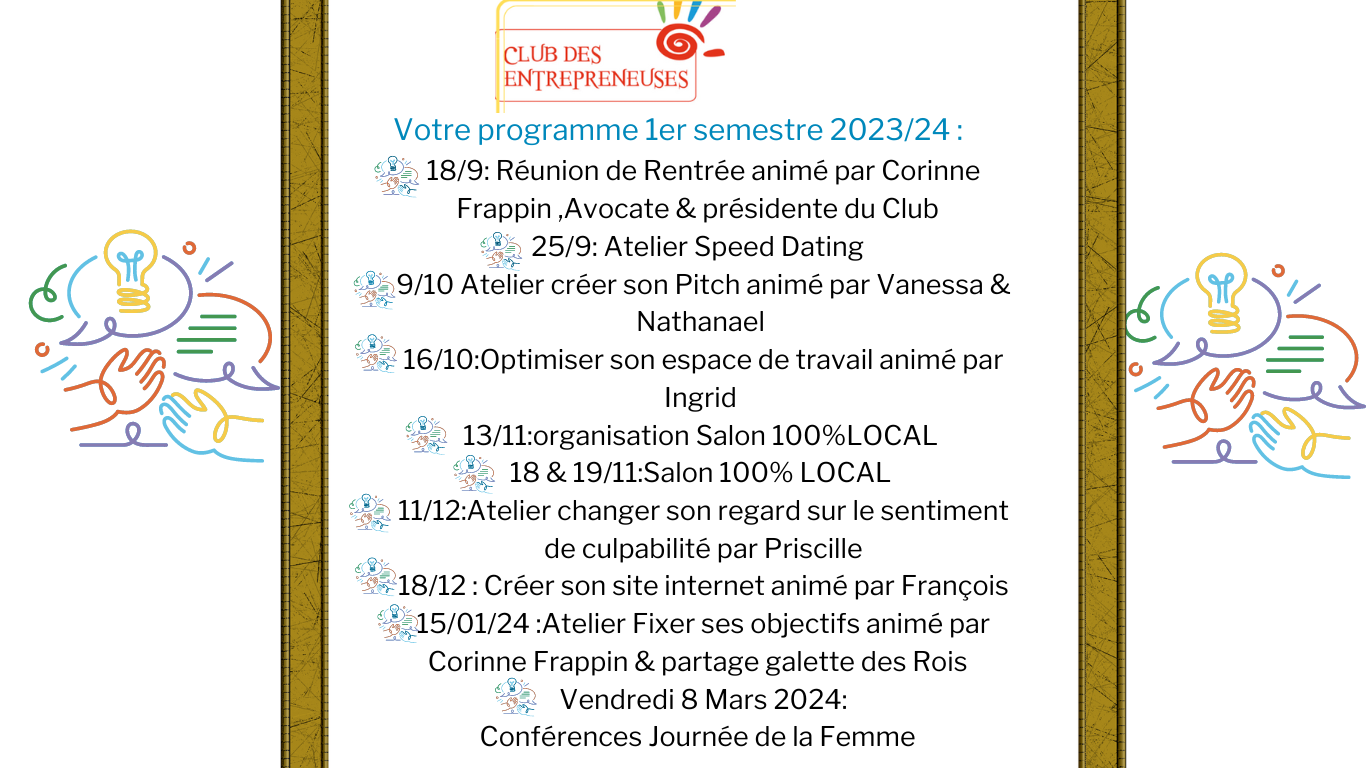 Aussi Concernant le Salon 100% local du 18&19 Novembre 2023 , le club aurait besoin de 8 bénévoles (il s'agit de l'organisation, nous aurons ensuite besoin d'autres bénévoles les jours de l'évènement).